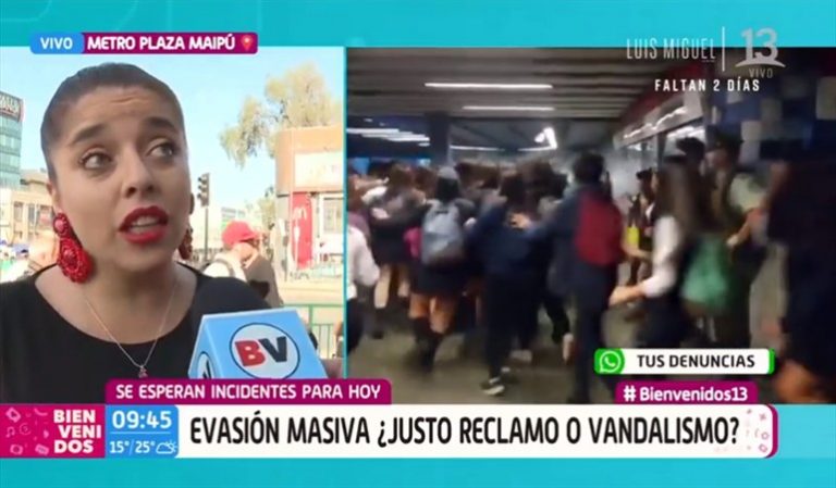 Así es, ya que esta chiquilla comenzó comenzó explicando que la evasión «es una forma legítima de protesta, ya que estan contempladas en la Constitución como un derecho humano fundamental. Lo que no está bien es el vandalismo, en eso estamos de acuerdo, pero la violencia es estructural y es una cuestión bidireccional».