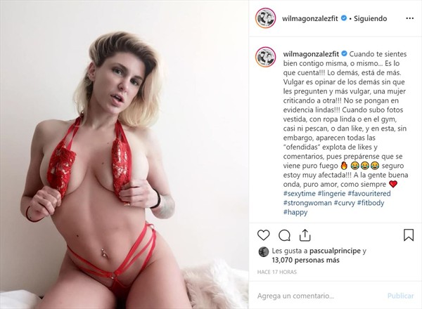 Agregando que «vulgar es opinar de los demás sin que les pregunten y más vulgar, una mujer criticando a otra. ¡No se pongan en evidencia lindas! Cuando subo fotos vestida, con ropa linda o en el gym, casi ni pescan, o dan like, y en esta, sin embargo, aparecen todas las ‘ofendidas‘, explota de likes y comentarios».