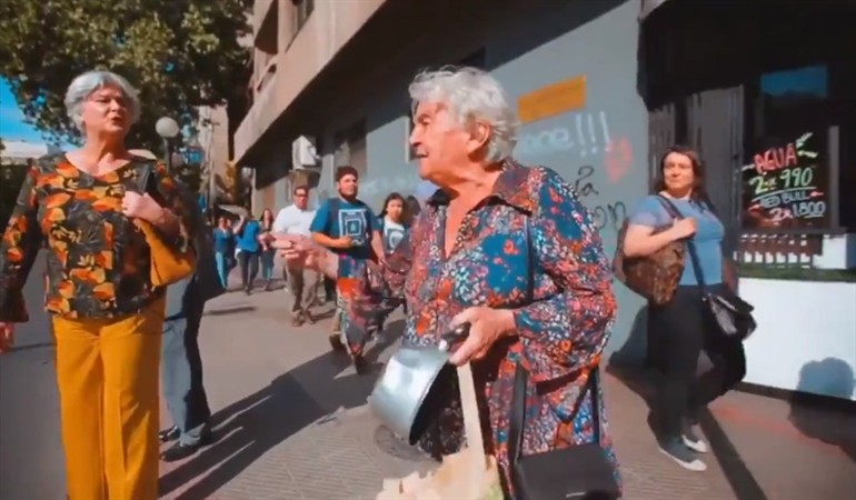 Como por ejemplo el diálogo entre dos señoras de la tercera edad que se «enfrentan» con dos opiniones muy opuestas sobre las exigencias y demandas del pueblo chileno.