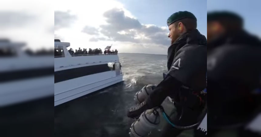 El traje que utiliza Browning para volar está compuesto por cinco turbinas de gas que producen unos mil caballos de fuerza. En viajes anteriores superó los 136 kilómetros por hora, según señala RT.