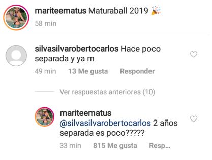 Eso si, de todas formas no faltaron los desubicados. Pues entre tanta felicitación, apareció un sujeto que le comentó: «tan rápido en pareja». A lo que la ex del Rey Arturo no dudo en responderle: «¿2 años separada es poco?».