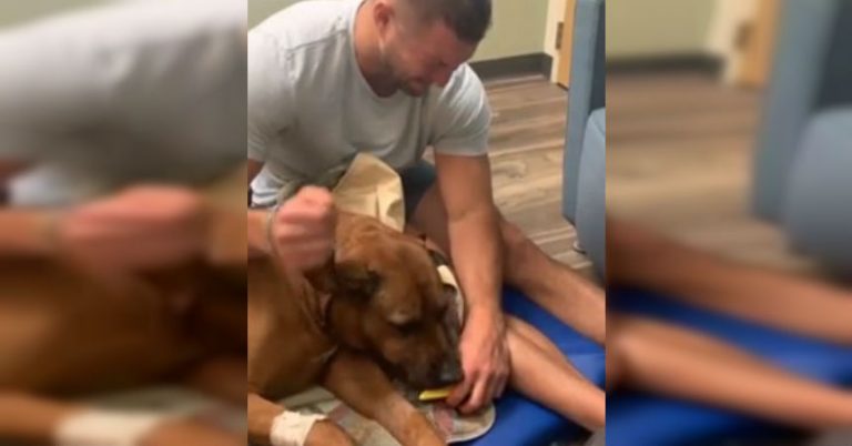 Hombre llora desconsolado mientras le da de comer a su perro por última vez