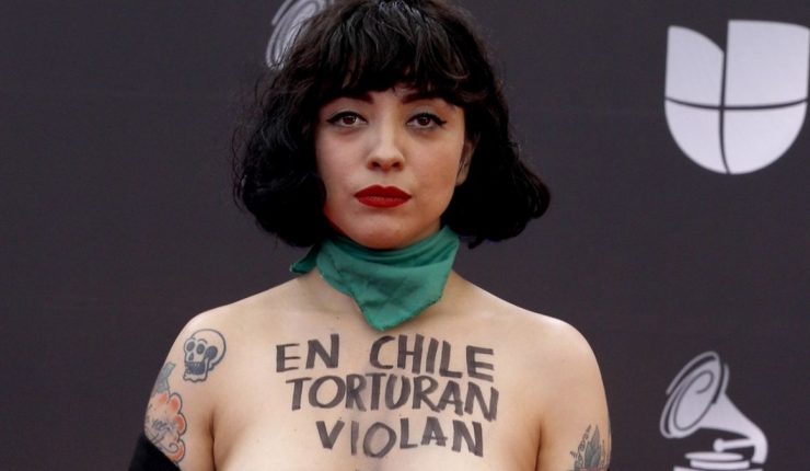 Hace unos días a modo de protesta Mon Laferte en los Latin Grammy 2019 posó en topless con un mensaje escrito en su pecho que decía «En Chile torturan, violan y matan, y esto sigue dando que hablar.