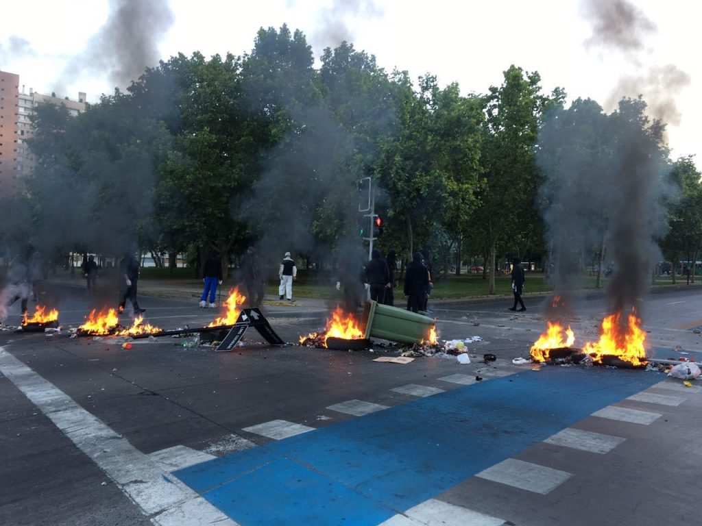 En las redes sociales ha empezado a circular la foto de un joven que está comiendo un completo al lado de una barricada.