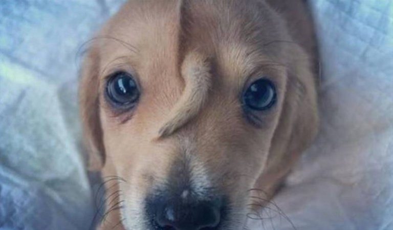 Perrito que nació con una cola en su cabeza enternece las redes sociales