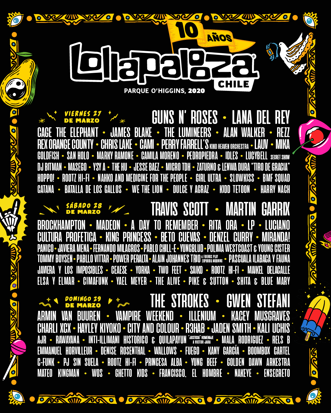Se aproxima la décima versión de Lollapalooza Chile ya que se realizará los idas 27, 28 y 29 de marzo y con la con la oficialización de las presentaciones