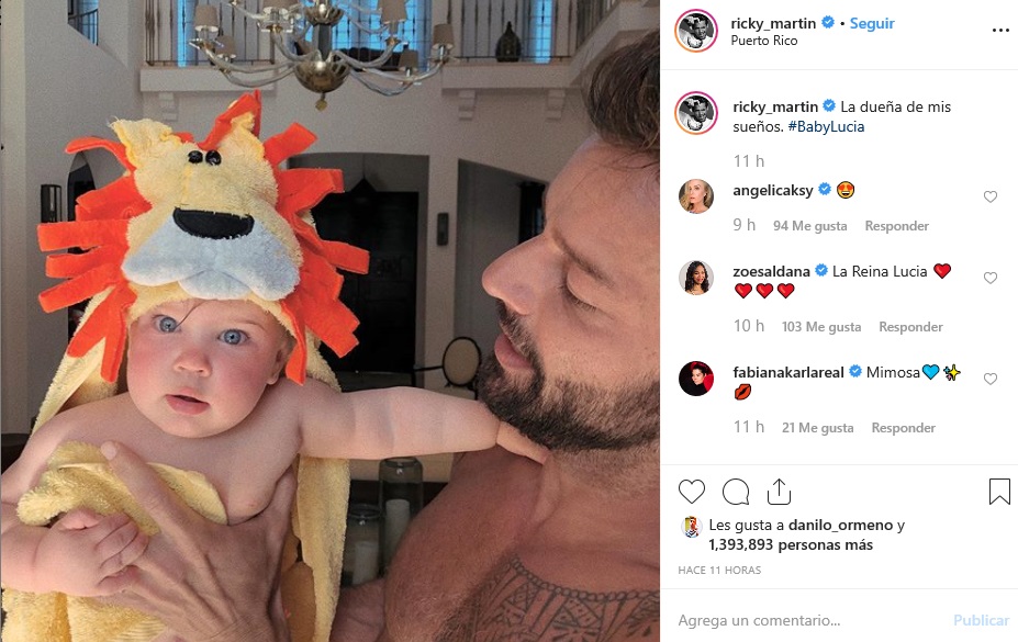 “La dueña de mis sueños. #BabyLucia”, escribió el intérprete , junto a la publicación que alcanzó más de 400 mil Me gusta y miles de comentarios, entre los que destacan los de sus colegas Wisin, Thalía, Beatriz Luengo y Paz Vega.
