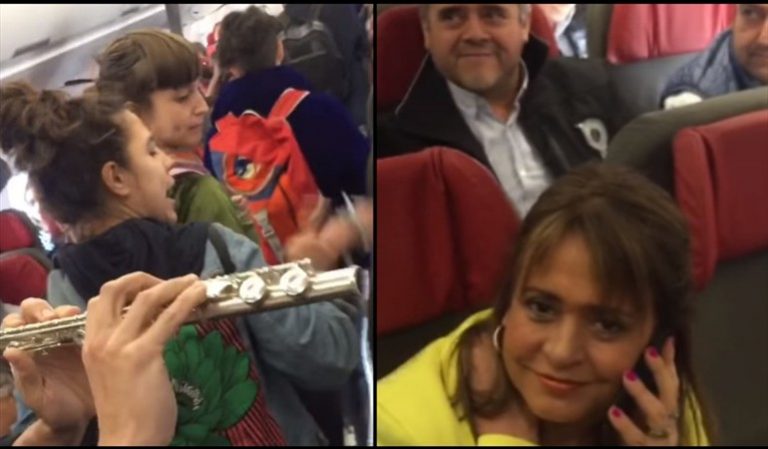 La banda nacional Newen Afrobeat realizó una funa artística a la presidenta de la UDI, Jacqueline van Rysselberghe, mientras ambos viajaban en un avión con rumbo a Santiago.