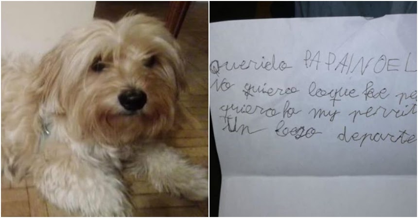 Ángel, el más pequeño de la familia, tiene siete años y decidió cambiar su carta a Santa Claus dos días antes de Navidad. Así se lo comunicó a su madre, a quien le dijo que renunciaba a todo lo que había pedido y que lo único que deseaba era que encontraran a la perrita. Su hermana, de 14 años, hizo lo mismo y difundió imágenes de Pipa por las redes sociales, recoge 20 Minutos.