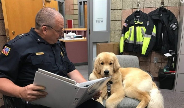 Resulta que el responsable fue Ben Franklin, el perro policial de terapia de la unidad, quien fue «capturado» con las patas en la masa por uno de sus superiores, mientras se «robaba» una muñeca.
