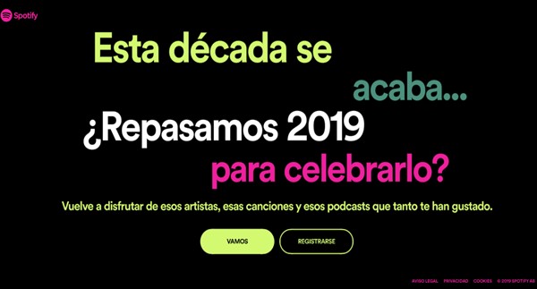 Cuando ingreses tienes que hacer click en «Vamos», donde podrás ver un divertido e interactivo resumen de lo escuchaste durante estos doce meses
