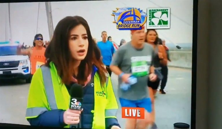 Todo partió cuando Alex Bozarijan (23) de la cadena WSAV News, narraba cómo se estaba llevando a cabo una corrida en Georgia, Estados Unidos. Justo en ese momento, uno de los participantes identificado como Thomas Callaway, golpea el trasero de la profesional.