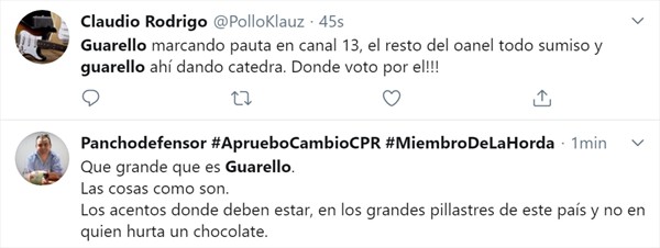 «No le ha provocado un daño económico profundo a nadie, tal vez a una tienda chica, pero pasemos de esto, en serio. Aprovechemos esta nueva conciencia que se está abriendo para llegar a otras alturas y entender un poco cómo funciona la mecánica económica del país y porqué estamos cómo estamos y porqué explotó todo. Si nos quedamos en este gordito y seguimos hablando de él y que se robó una caja de fósforos… no podemos seguir así. Tengo 30 años de periodismo y eso va en contra de lo más esencial de lo que significa esta profesión. Existen las noticias y existen los chascarros, esto es un chascarro», cerró.
