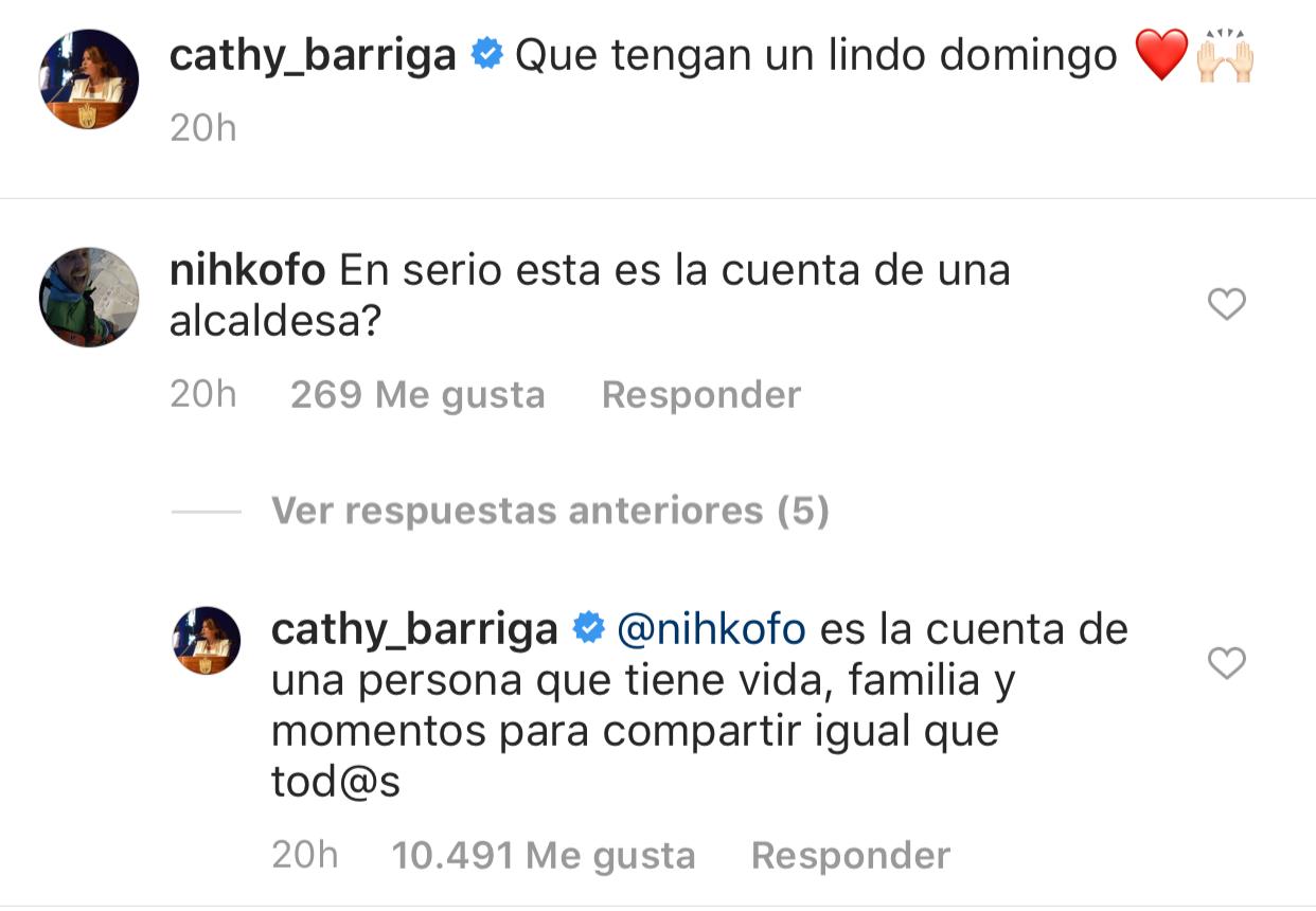 Al ver esto un usuario escribió : «¿En serio esta es la cuenta de una alcaldesa?» a lo que la autoridad respondió de una: «Es la cuenta de una persona que tiene vida, familia y momentos para compartir igual que tod@s», escribió.