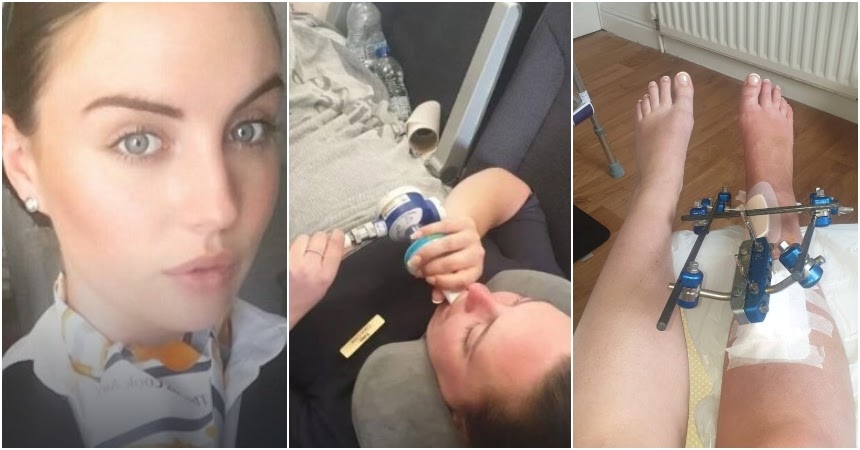 El accidente le dañó el peroné, la tibia, el tobillo y el pie, detalló la mujer a Daily Star. Eden tuvo que aguantar con el dolor, tumbada en los asientos, más de siete horas hasta que pudieron aterrizar y llevarla a un hospital para que la atendieran.