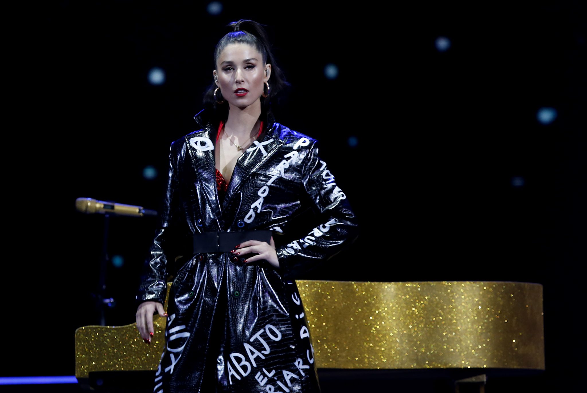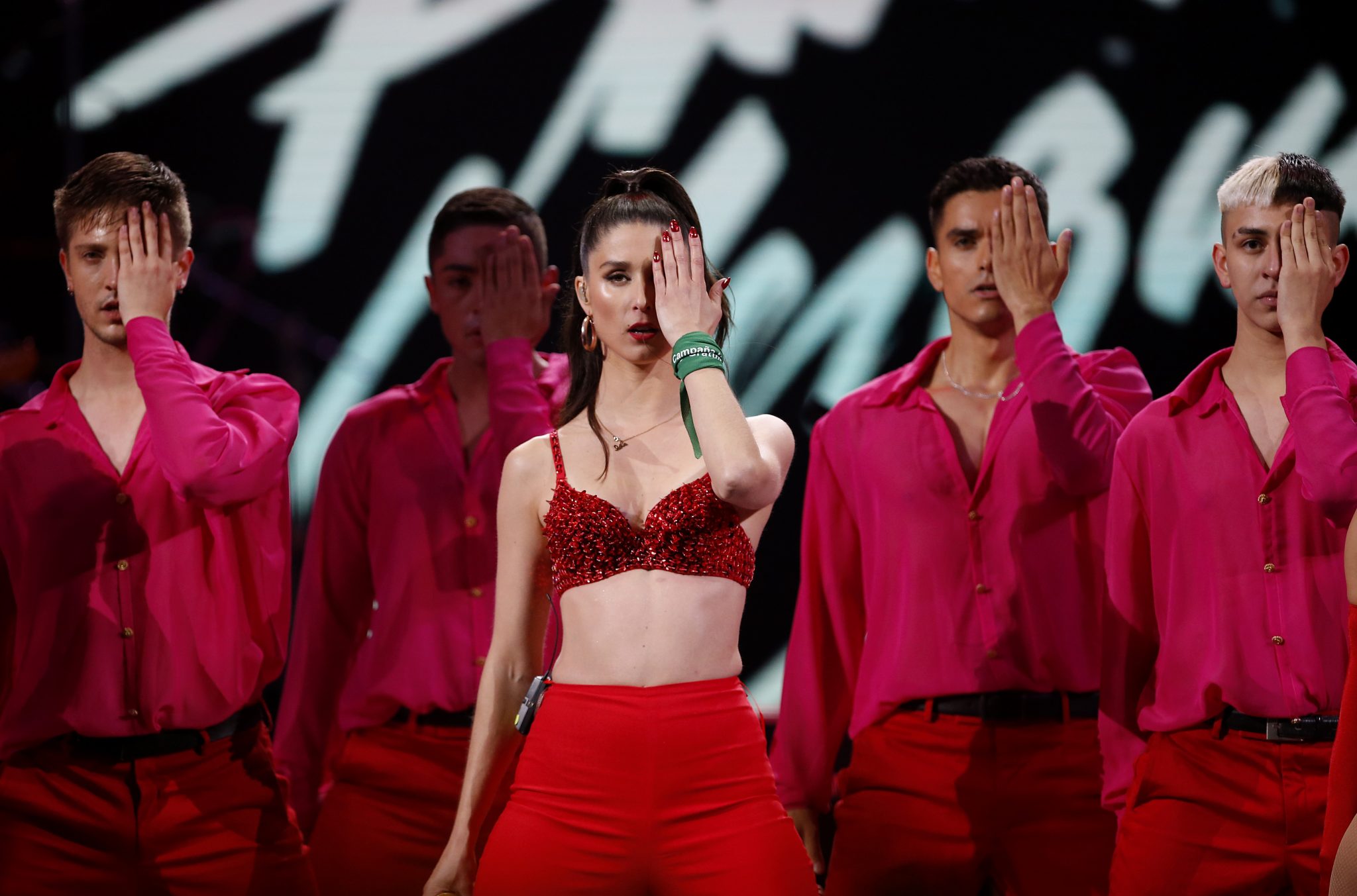 Fue al finalizar su tema ‘Buen soldado’, que ella y su staff de bailarines se taparon un ojo, en alusión las víctimas.