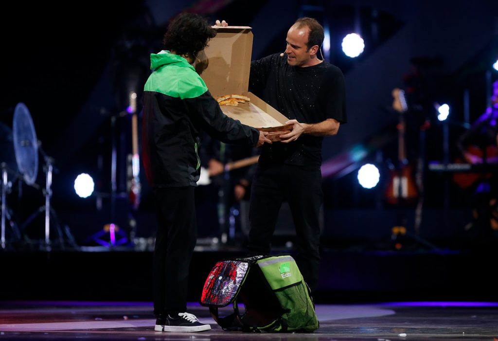 Sin embargo, el momento más esperado por el público fue la imitación al Presidente Sebastián Piñera. Kramer aludió a diversos episodios del Mandatario, como los cánticos en su contra (“gracias por el homenaje”), su baja aprobación en las encuestas (“tengo 4% de batería y 3% de aprobación”) y la aparición de un repartidor de delivery que le llevó cajas con pizzas que ya habían sido devoradas. “Para que veas lo que se siente”, le dijo el joven repartidor.
