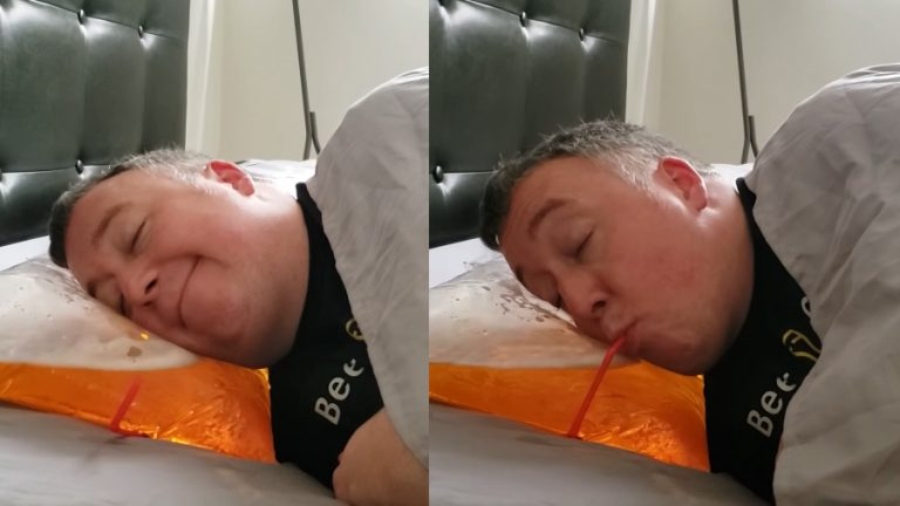 Phill es el nombre de este héroe sin capa, quien en un video tutorial que subió a YouTube, comentó que él sabe que muchas veces da sed en la noche y que no siempre se quiere tomar agua o levantarse. Por esta razón esto viene como anillo al dedo. Además, dijo que «la espuma (de la cerveza) te da soporte lumbar» mientras duermes.