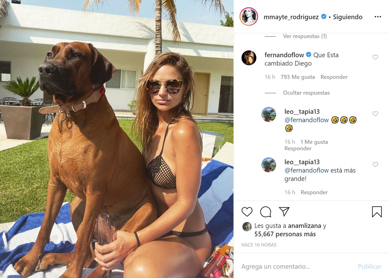 Mayte Rodríguez al igual que lo ha hecho antes compartió en Instagram una foto con su perrita Naomi.En la publicación, la polola de Diego Boneta recibió