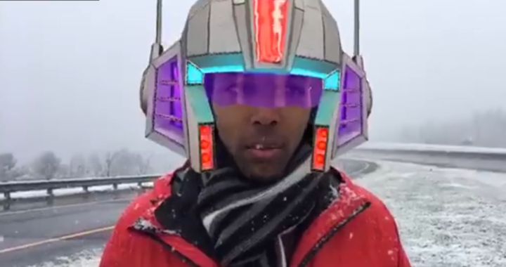 Bien entusiasmado el reportero comenzó a explicar los efectos de la caída de nieve, sin darse cuenta que sin querer había activado los filtros en Facebook Live.