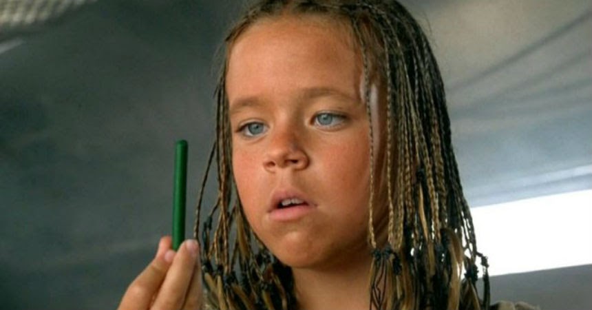La cinta también tuvo entre sus estrellas principales a una niña de solo 10 años. La actriz Tina Majorino fue la encargada de interpretar a Enola, la pequeña que tiene tatuado en su cuerpo el mapa para llegar a tierra firme, el paraíso para los pocos humanos que quedan en el planeta, que en ese futuro está rodeado de agua por todas partes.