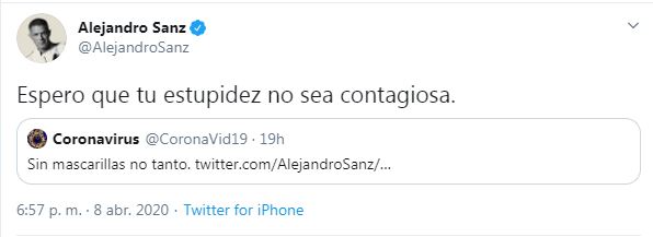 Ante esto, el intérprete de «Mi persona favorita» le replicó duramente. «Espero que tu estupidez no sea contagiosa», respondió Sanz.