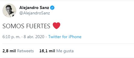 Sanz escribió un mensaje de aliento a sus compatriotas y al mundo: «SOMOS FUERTES».