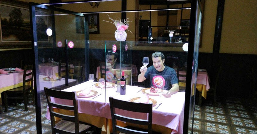 Se trata de un sistema para separar a los comensales en la mesa de un restaurante, por ejemplo. Pueden verse, hablar pero no tocarse y «si alguno estornuda, no pasaría nada», aseguró Gil al diario El Español.