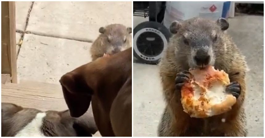 La mujer grabó en la entrada de la cocina de su casa de Filadelfia, Estados Unidos, a una marmota intrusa que degustaba un trozo de pizza en el patio.