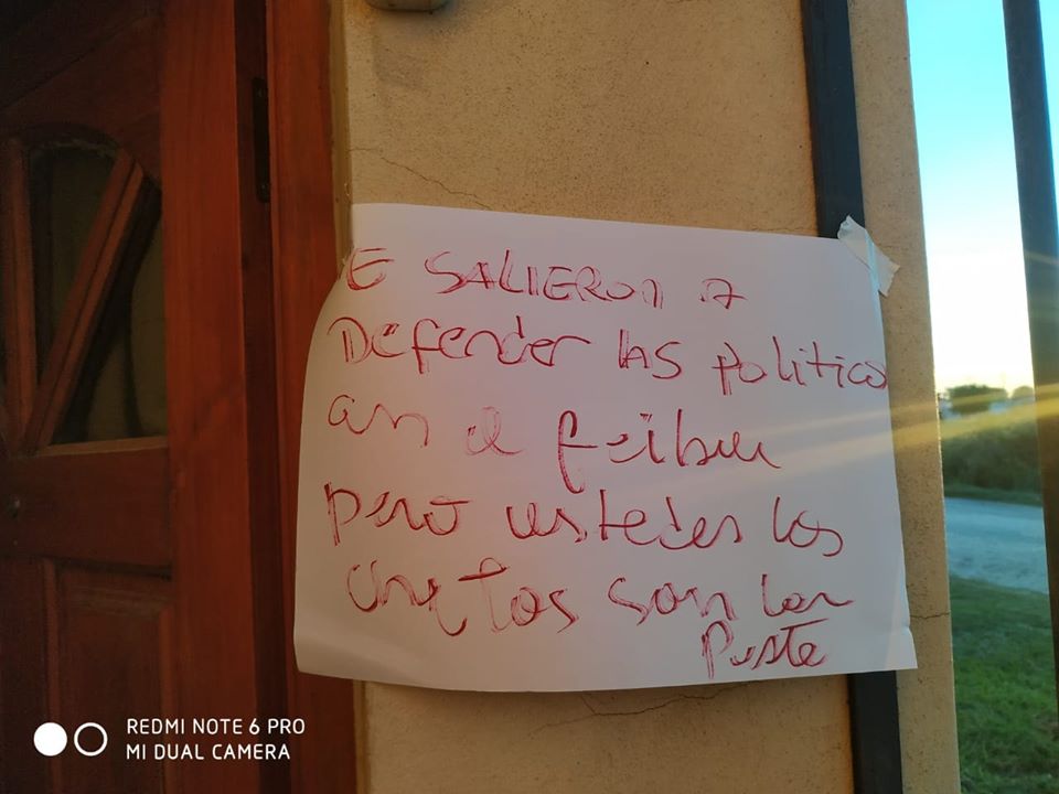 «Sabemos que sos enfermera hija de p… Váyanse del barrio vos y tu hija. Nos van a contagiar a todos. Vamos a juntar firmas«, dice uno de los carteles que pegaron en la entrada de su casa.