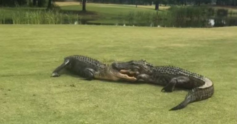 El aterrador video de dos caimanes peleando en medio de un campo de golf