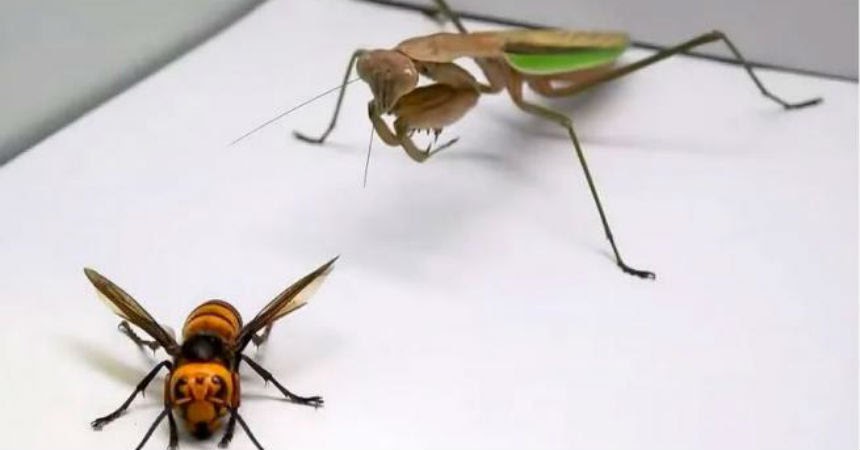 Gizmodo publicó un clip en el que una de estas avispas se las ve con una mantis religiosa. En las imágenes se ve cómo el insecto de largas patas es, sin lugar a dudas, un depredador natural de la avispa gigante asiática.
