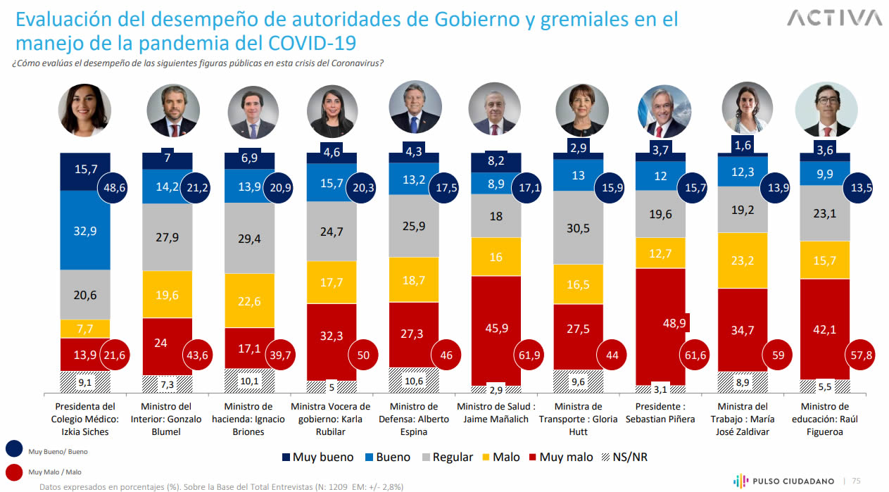 La encuesta Pulso Ciudadano de Activa Research dio cuenta de la evaluación del desempeño de las autoridades de Gobierno y gremiales, en el manejo de la pandemia en Chile.
