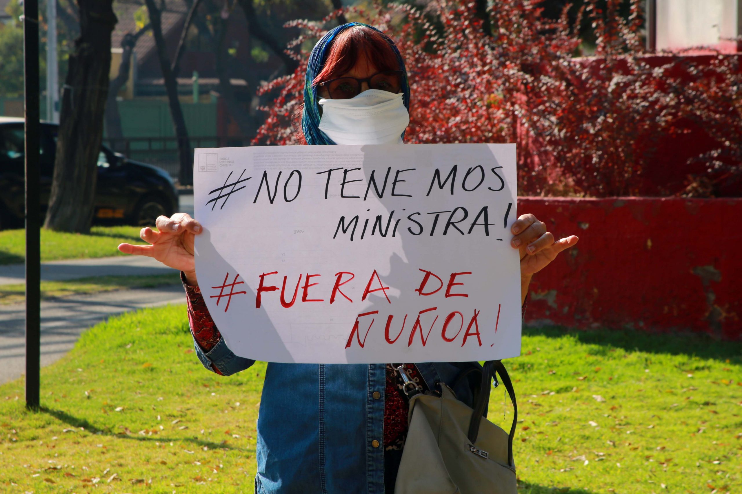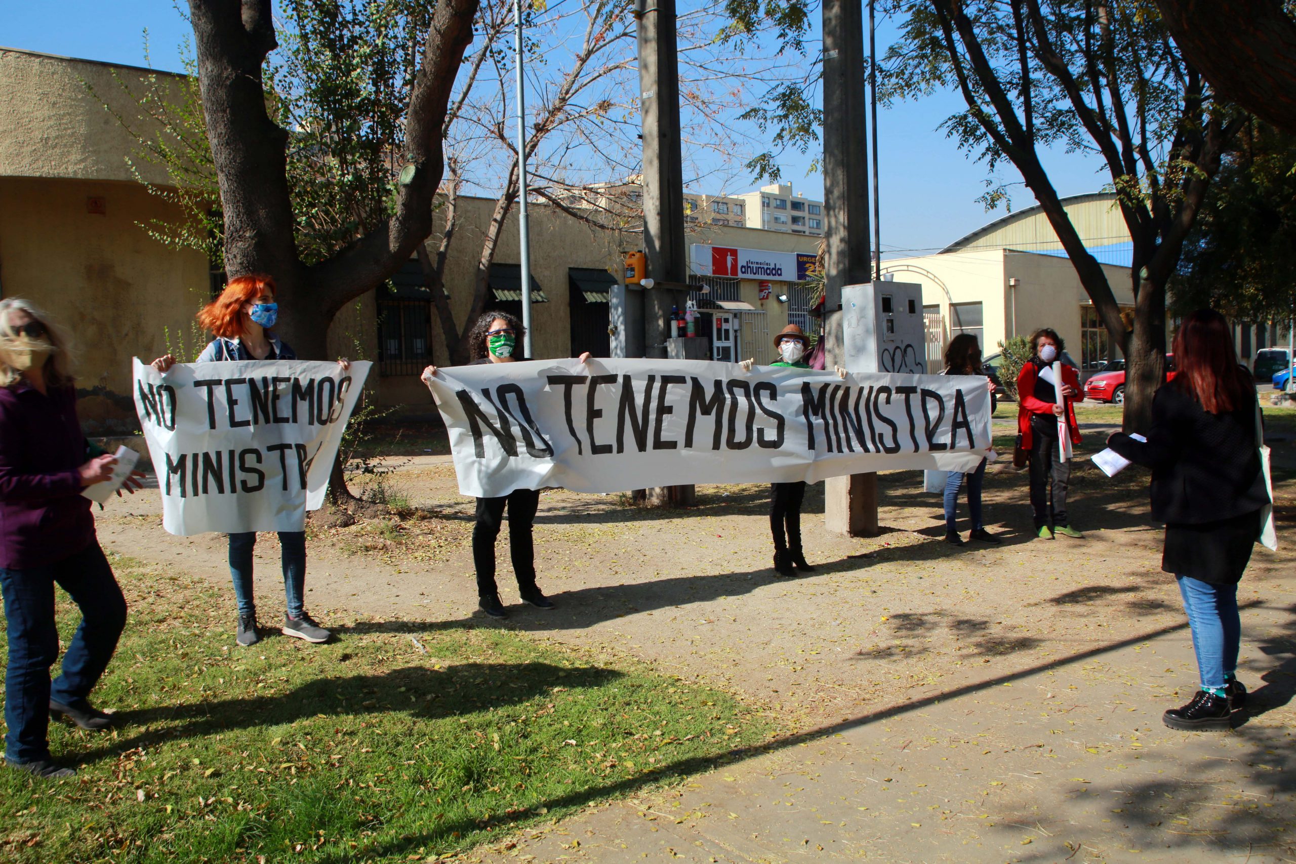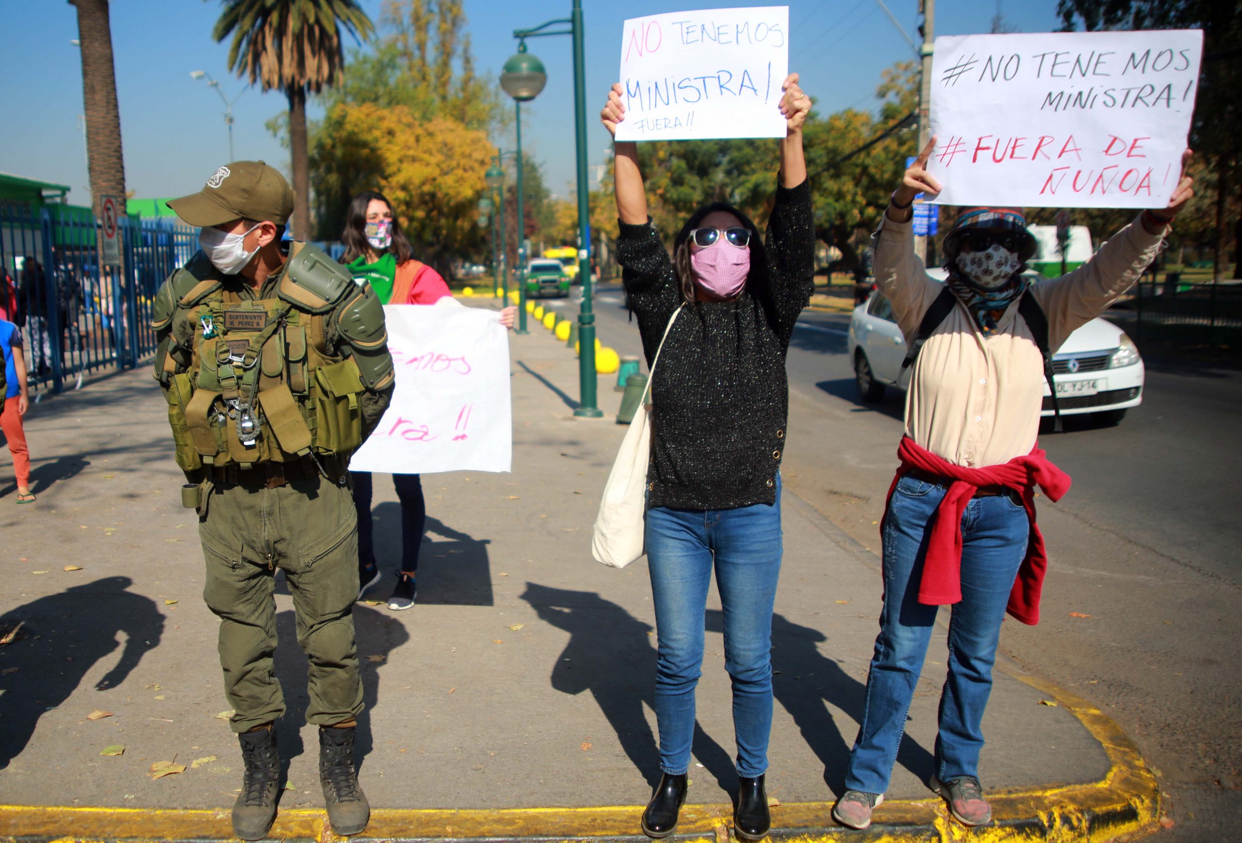 En medio de esto, varias mujeres llegaron al lugar a manifestarse en contra la sobrina nieta de Augusto Pinochet, con pancartas que decían “no tenemos ministra“.