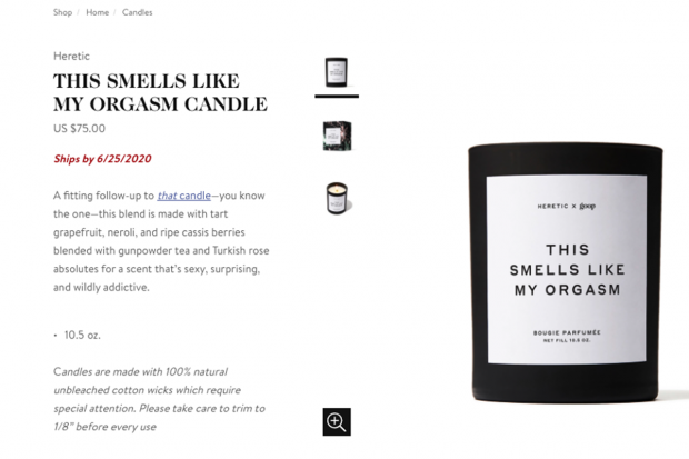Se trata de una vela que huele a sus orgasmos. Un exclusivo producto que ha puesto a la venta una vez más a través de la tienda online de Goop. Su precio alcanza los setenta y cinco dólares, y estará a la venta a partir del próximo 25 de junio.