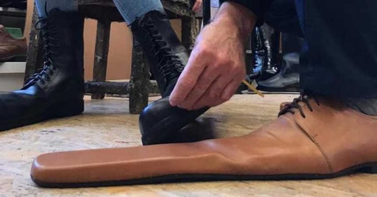 Se trata de unos zapatos talla 75 confeccionados por “Incaltaminte din piele la comanda”, de la ciudad de Cluj en Rumania. La gracia es que al ser extremadamente alargados, como si se tratara de los que utilizan los payasos, las personas inevitablemente deben mantener la distancia.