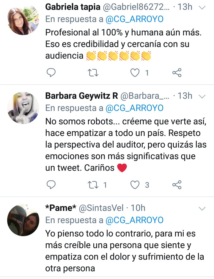 ‘No llore. Una persona que comunica dramas debe mostrarse entera, porque si se hace recurrente, pierde lamentablemente credibilidad. Saludos’, les escribió un usuario de Twitter.