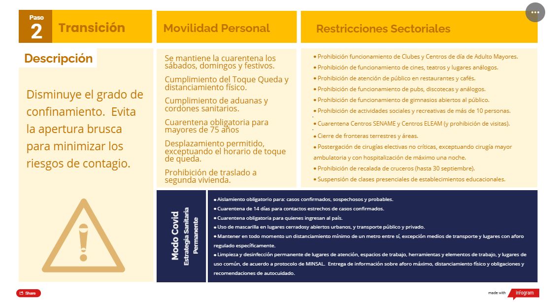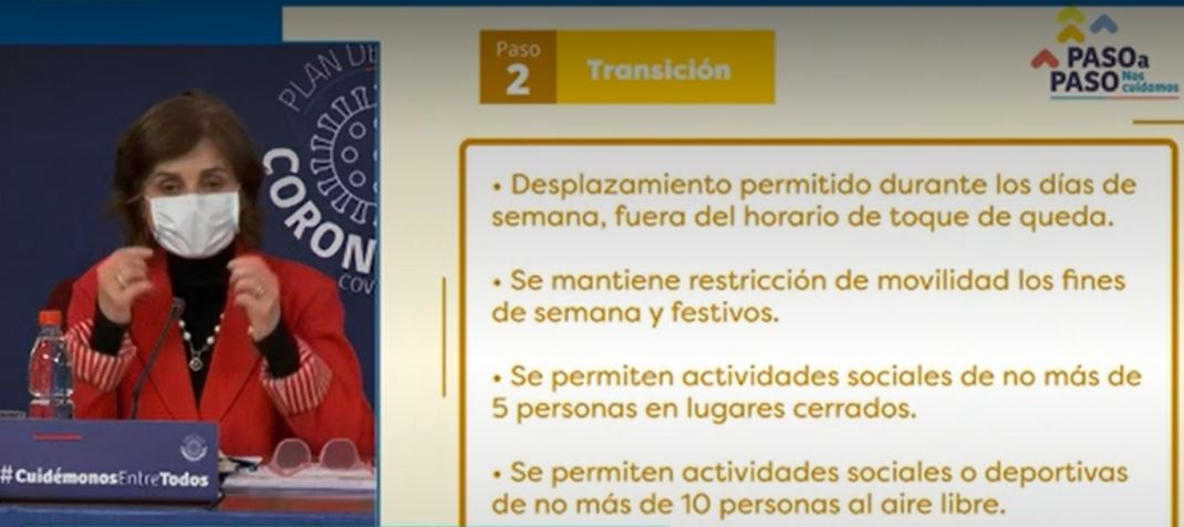 Durante la transición se levantan las restricciones de desplazamiento, por lo que las personas podrán salir de lunes a viernes durante el día, fuera del horario de toque de queda. La cuarentena se mantiene los sábados, domingos y festivos.