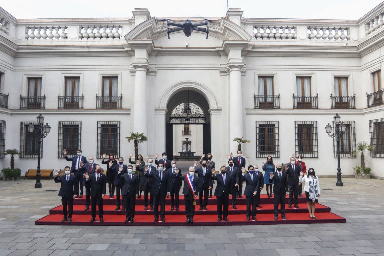 La mañana de este viernes Sebastián Piñera posó de forma inédita y por escasos 18 segundos junto a su renovado equipo ministerial en La Moneda
