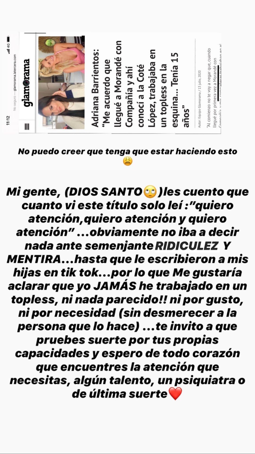 Hace poco te contamos que Adriana Barrientos generó polémica al decir que Cote López trabajaba en un topless cuando tenía 15 años.