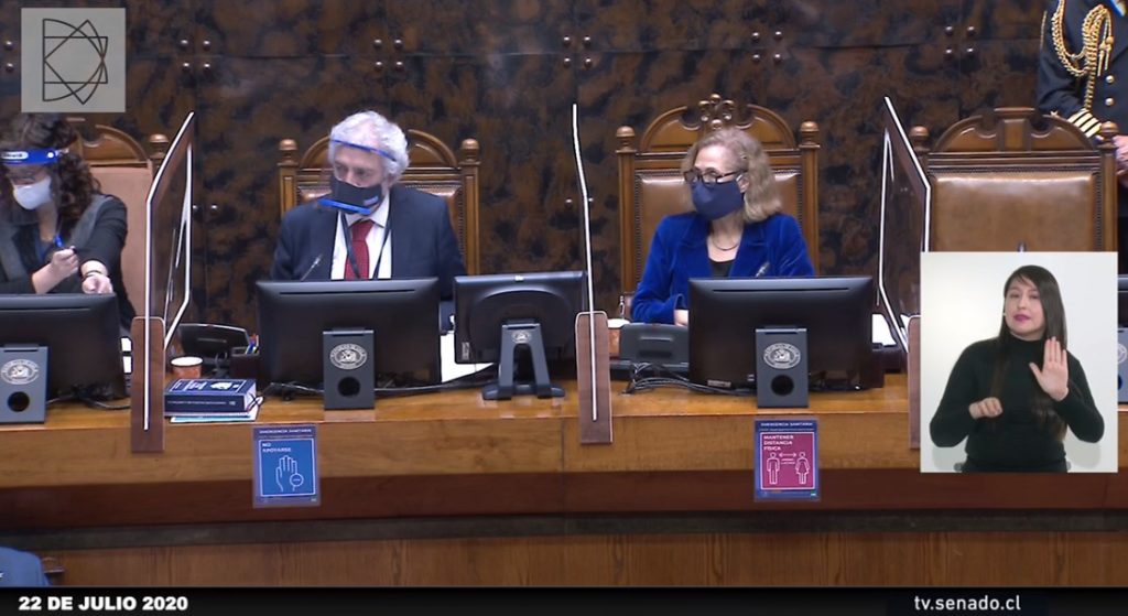 La primera parte de la sesión estuvo marcada por la discusión en torno al procedimiento de la votación, que quedó establecida en los 3/5 de los votos favorables, y no 2/3 como lo propuso el senador RN Andrés Allamand.