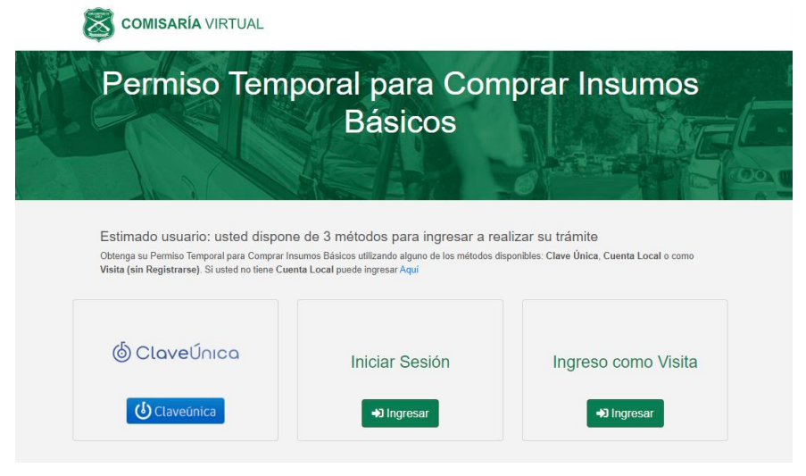 Durante esta semana se mantendrán los tres tipos de ingreso a los permisos de desplazamiento: el “ingreso de visita”, que es la obtención mediante la cédula de identidad y el número de serie; el inicio de sesión en la cuenta local de Comisaría Virtual; y el uso de la Clave Única.