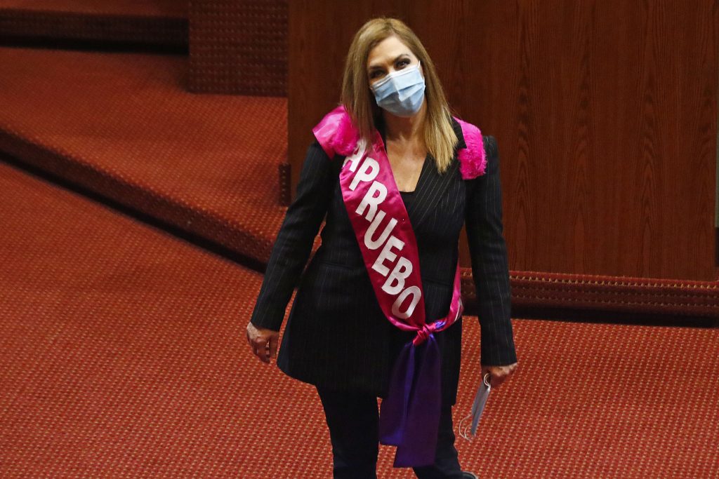 Este martes, Pamela Jiles se presentó en la Cámara de Diputados utilizando una banda con el mensaje “Apruebo”, llamando la atención de los presentes.