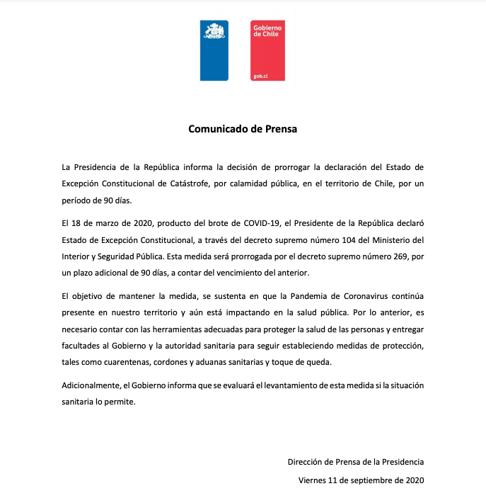 Recordar que esta medida ya se había ampliado con motivo de las Fiestas Patrias, ya que el plazo caducaba el 15 de septiembre.