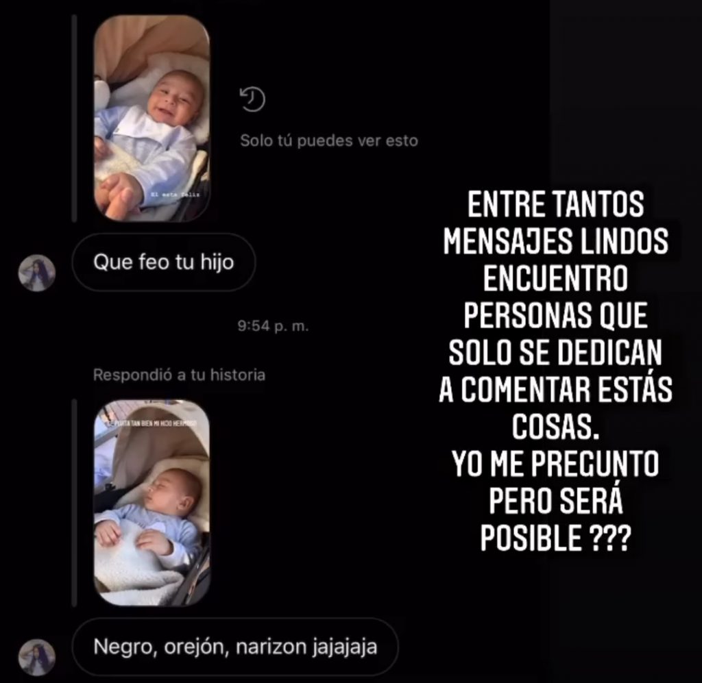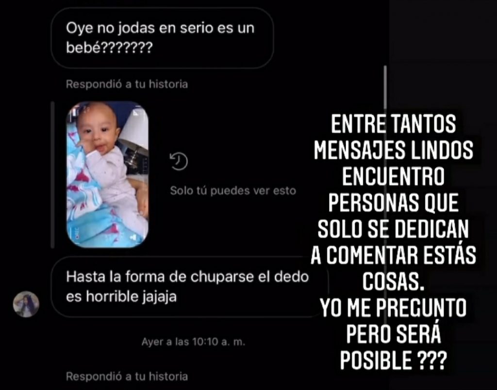 “Entre tantos mensajes lindos, encuentro personas que solo se dedican a comentar estas cosas. Yo me pregunto: ‘Pero ¿será posible?”, escribió en sus historias junto a las capturas de ellos.
