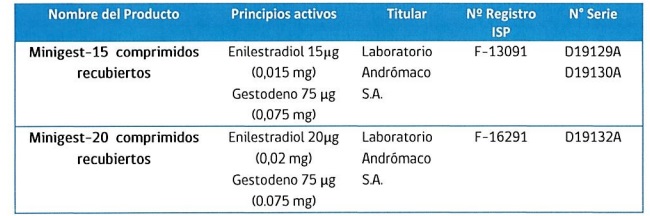 Se trata de los productos farmacéuticos Minigest-15 y Minigest-20.