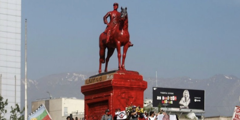 Este día un grupo de individuos pintó de color rojo la estatua del General Baquedano que está ubicada en el centro del lugar.