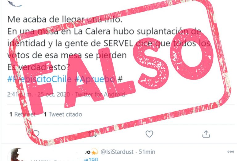 NOTICIA FALSA| Desmentimos esta información que se encuentra circulando en estos momentos por redes sociales. Infórmate por los canales oficiales de Servel. #Plebiscito2020 pic.twitter.com/KrQfGsUoLD