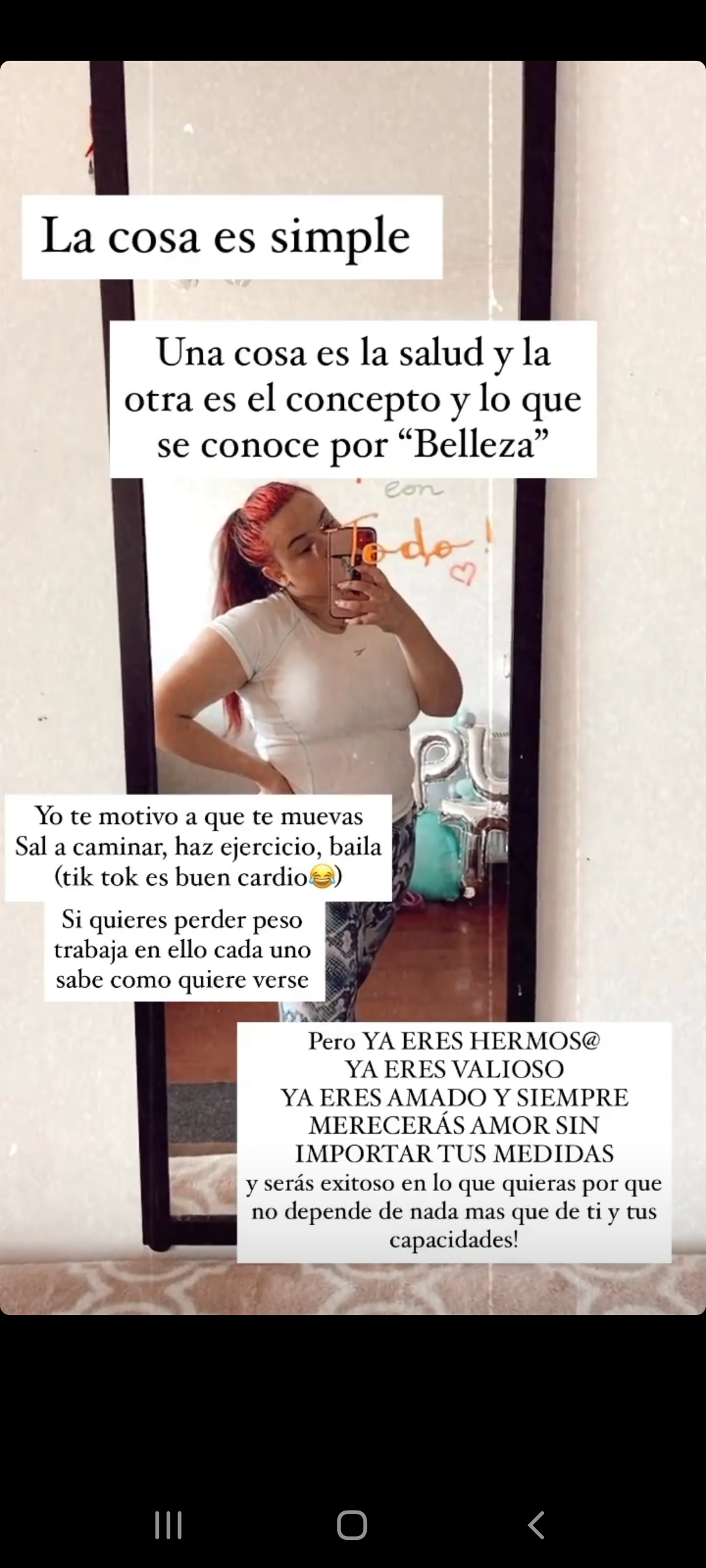 “Ya eres hermoso, valioso. Ya eres amado y siempre merecerás amor sin importar tus medidas. Serás exitoso en lo que quieras, porque depende únicamente de ti y de tus capacidades”, concluyó el mensaje.