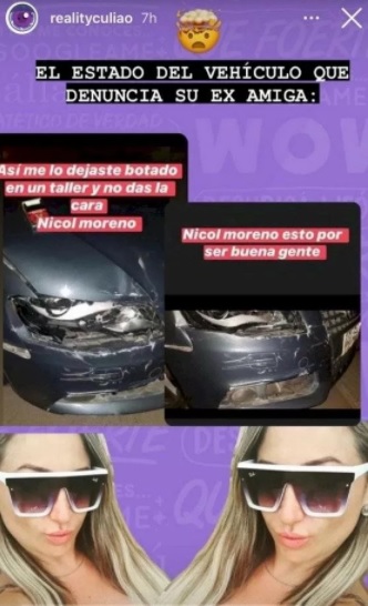 Según la examiga de Luli, ella le debe una gran suma de dinero por un lujoso auto que le prestó y que Nicole Moreno no solo dañó, sino que además jamás lo fue a retirar del taller mecánico.